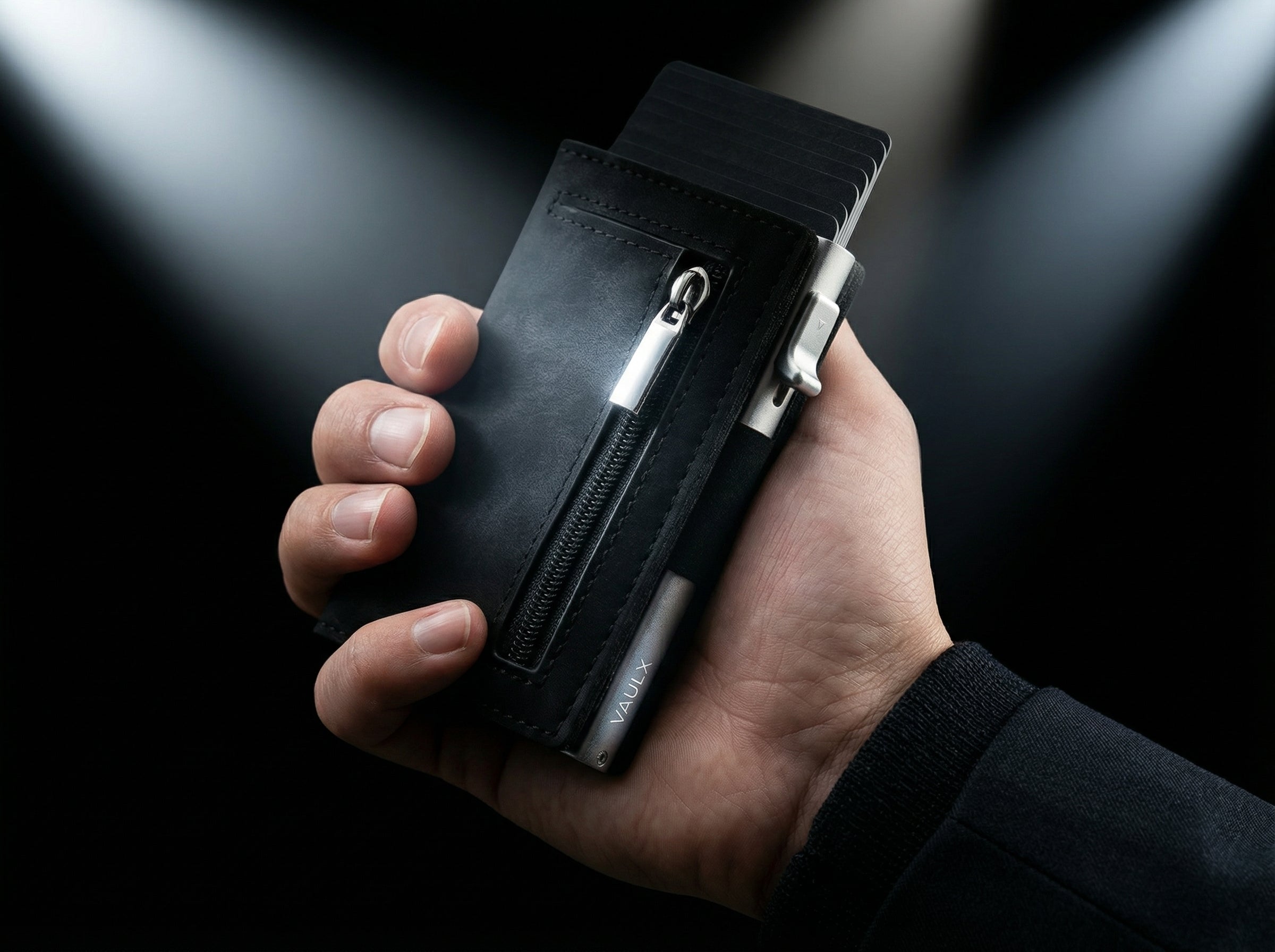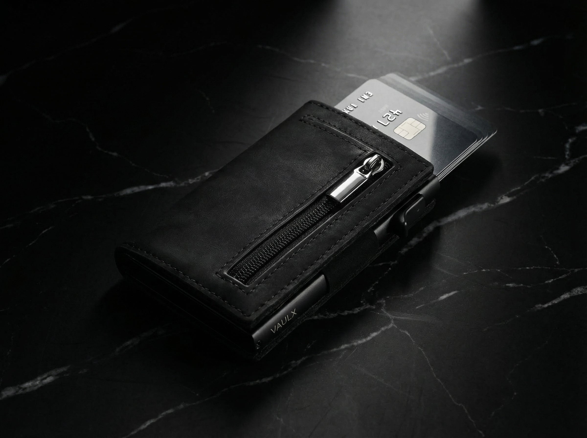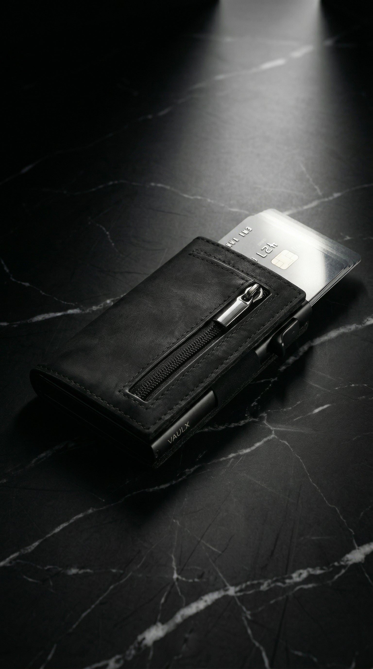 VAULX repense le portefeuille traditionnel. Accès instantané, protection RFID, format ultra-slim — tout ce dont tu as besoin, sans rien de superflu.